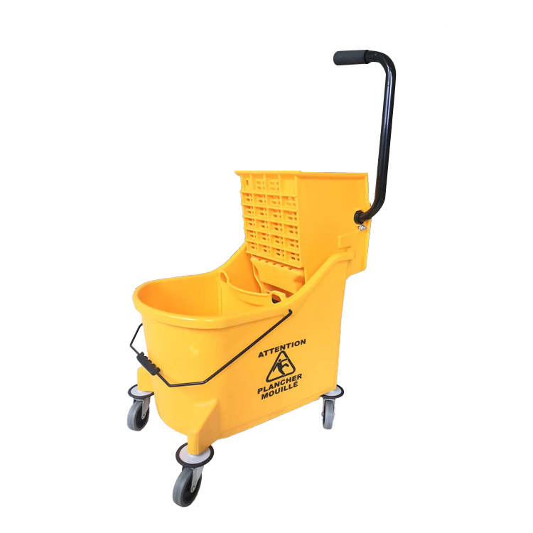 EcoClean No.2616 33L Janitorial Yellow Side Down Press Wringer Commercial Mop Bucket with Wheel